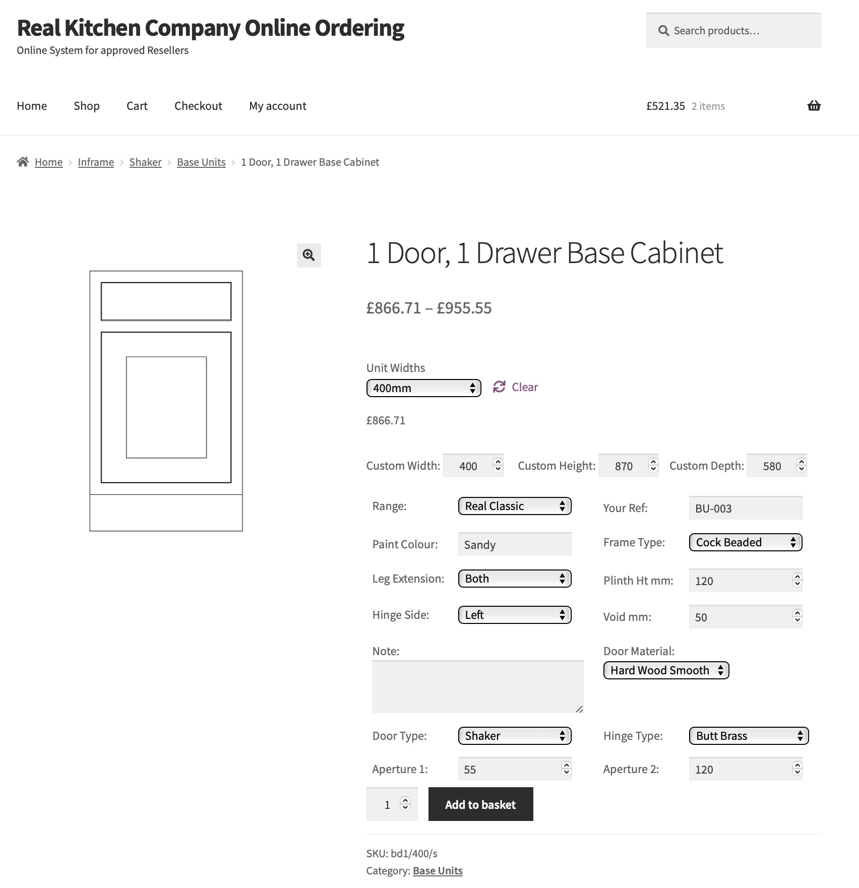 This Online Ordering System allows kitchen resellers to configure products (custom-built kitchen units) in a customised WooCommerce implementation.